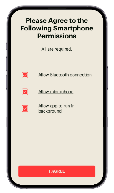 If this is your first time launching the app, you’ll be asked to allow Bluetooth and location permissions. These are required for pairing.