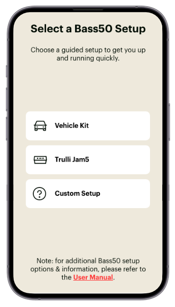 If you ever change vehicles, reconfigure your setup, or update your system, you can easily re-run the setup in the Trulli App or move your Bass50 to a new ride. It’s that flexible.