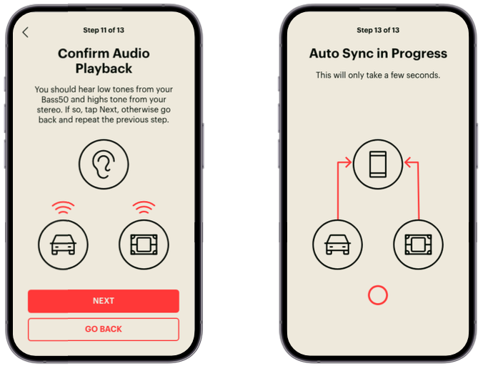Follow prompts for Auto-Sync to align your Bass50 with your system