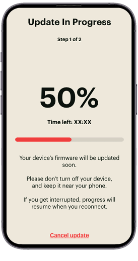 Additionally, make sure your phone’s battery level is sufficiently charged and not critically low. Ensure your internet connection remains stable when initiating the firmware update. Once the update is in progress and you see the progress percentage displayed, maintaining an internet connection is no longer required. Updating Your Bass50The update occurs through an over-the-air (OTA) process, during which you can monitor progress in real-time within the app. File Transfer: Programming the Bass50: - Approximately 3-5 minutes. Upon successful completion, you’ll receive a notification within the app confirming the update.