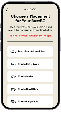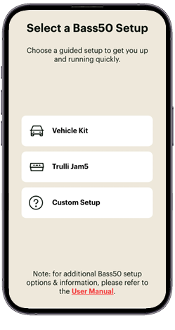 Next, you’ll be asked to define your setup environment—for example, whether you’re using the Bass50 with the Trulli Vehicle Kit or in a different location.