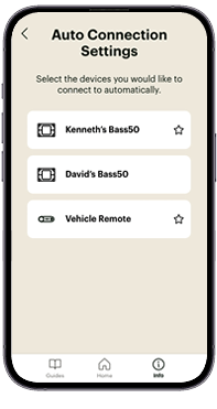 Note: Only one Bass50 and one Trulli Remote can be starred for auto-connection at a time.